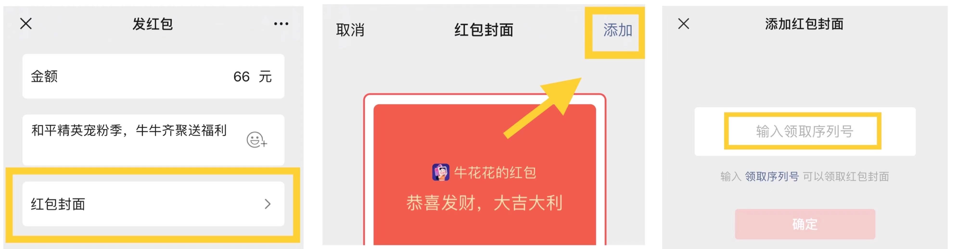 【关注官号领宠粉大礼包】 活动期间,用户在快手内关注和平精英官方账号,可领取活动奖励。奖励数量有限,先到先得。 活动奖励: 1.和平精英限定红包封面 获取方式:活动期间前1万名关注和平精英官方账号的用户可领取和平精英限定红包封面兑换码 兑换码使用方式