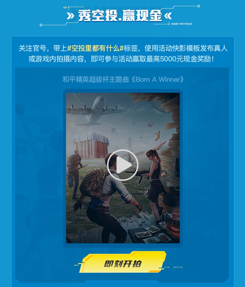 和平精英空投style正式开启!空投里都有什么呢?赶紧打开你的脑洞分享你的创意吧! 现在,打开快影搜索【和平精英空投节】 ,使用模板并携带话题 #空投里都有什么 ,即可参与活动,瓜分万元奖金豪礼~ 鸡仔小贴士:记得截图保存你的空投入场券哦~